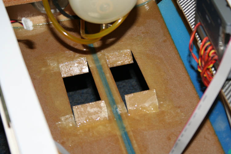 Aus dem Kopfspant habe ich nicht benötigte Teile herausgefräst und im Gegenzug den Rest mit Glasfasermatten verstärkt. Das bringt nicht nur eine Gewichtsersparnis, sondern die Motortemperatur wird dadurch erheblich gesenkt, da es hinter dem Motor keinen Hitzestau mehr gibt.