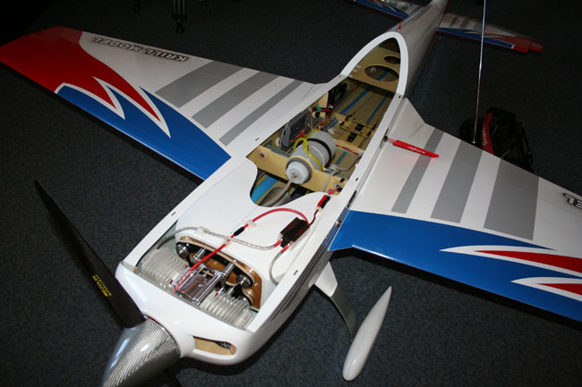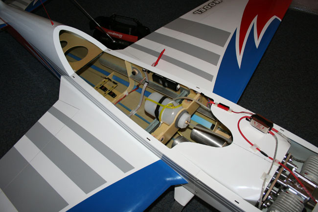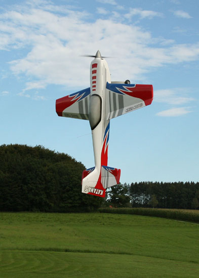 Warum bin ich da nicht schon früher drauf gekommen? Ganz einfach: Damals hatte es geheißen, dass ein Kunstflugmodell 0° Motorsturz hat. Ausserdem gab die in Kleinserie gefertigte Motorhalterung lediglich den Rechtszug vor.