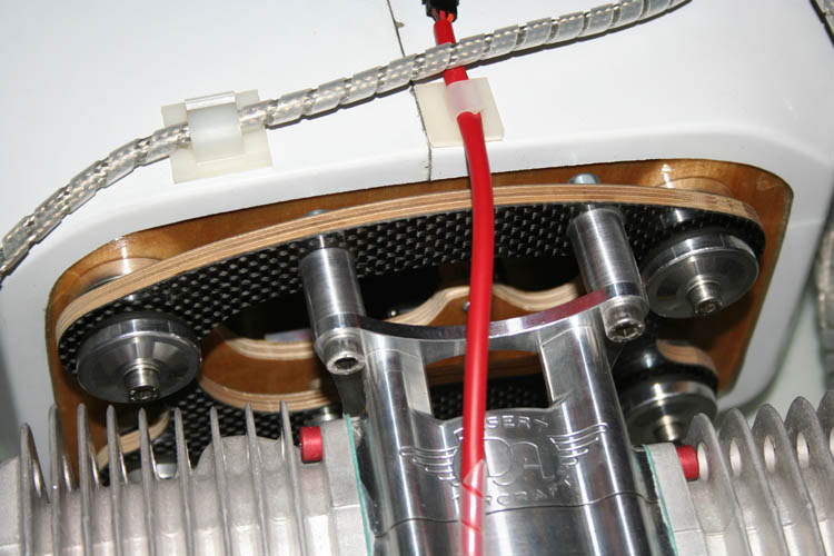 Links oben kann man den zusätzlichen Herex-Spanten erkennen, der das Aufschwingen der darüber montierten Zündung bei laufendem Motor verhindert.