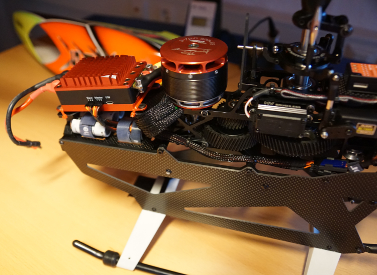 Mit diesem Setup kann ich auch bei einer Außentemperatur von 30°C problemlos meinen gewohnten Flugstil fliegen. Sowohl der Regler (außen <40°C) als auch der Motor (<50°C) werden nicht sonderlich heiß. Das Logfile des Kosmik gibt für die FETs eine Maximaltemperatur von 55°C an. Nach dem reduzieren der Last kühlten sie sich auf 44°C ab.