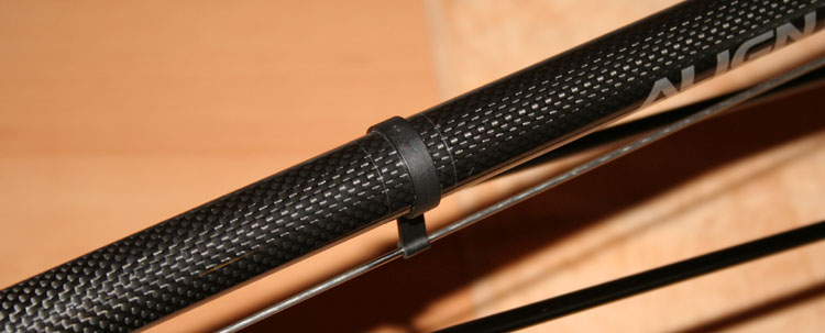 Damit die Heckanlenkungsführungen nicht rutschen habe ich 1,5 Lagen Tesa um das Heckrohr geklebt. Eingespannte Kabelbinder (wie in der Anleitung beschrieben) gefallen mir nicht so.