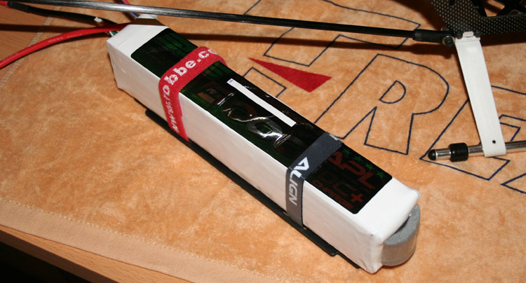 Der Schaumstoffstreifen vorne am LiPo ist eine Art Abstandshalter damit der Schwerpunkt zuverlässig eingestellt wird.